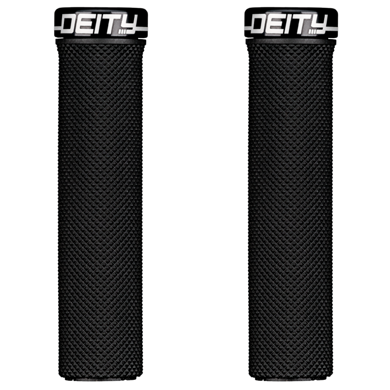 The perfect complement to our all new DEITY line of grips, the WAYPOINT are a Mountain Biker’s dream! Built around a smart tapered internal sleeve that eliminate any chance for play once fully tapped onto your handlebar and coupled with the single bolt lock-on clamp, the new DEITY line of grips left no detail unexplored. Our TRC rubber blend delivers an incredibly resilient tactile performance for improved durability with an amazing feel right out of the packaging. A diamond pattern is a beloved texture for a MTB grip and is often used, but rarely maximized. Eager to deliver you a diamond pattern grip that was slightly larger in outer diameter to the standard norm, the design of the WAYPOINT was born. Featuring a 31mm outer diameter, the body of the WAYPOINT seamlessly transitions to the end of the grip allowing you the room to stretch out on epic climbs, to maximize every mm of available grip, and to avoid having to have your hands on metal clamps. Available in a perfect match to all of our color offerings and featuring a debossed 3D DEITY Icon capped end for subtle style, the WAYPOINT deliver unmatched traction, durability, and class!